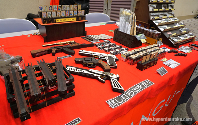 「GANGU~」では木で作られたアクセサリーや輪ゴム銃を販売していた。