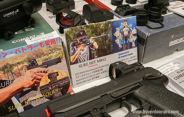 「ノーベルアームズ」では各種光学機器を豊富に取り扱われていた。今回のイチオシは視野が広く人気のSURE HIT MASTERのレンズ同じものを使用し、そのボディサイズを約半分までコンパクトにしたモデル「ABSOLUTE PRO」。