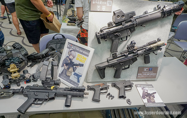 「115x TAYLOR」のブースでは東京マルイの次世代MP5用 M-SLタイプ グリップモジュールの展示があった。実銃のものを細部まで再現しており、通常のMP5のグリップよりも角ばった印象を受けたが握りやすく、セレクターも3種類のものから選び、MP5にさらなる拡張性を感じた。2023年8月末発売予定。
