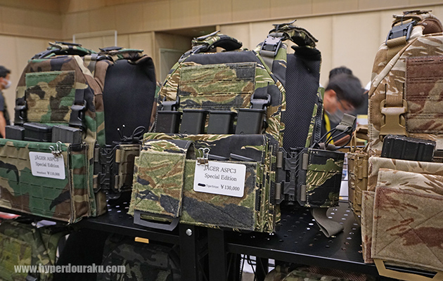 「Heta Ranger」ではさまざまなタクティカルギアを販売。新作にタイガーストライプ柄のJÄGER ASPC3も取り扱われていた。
