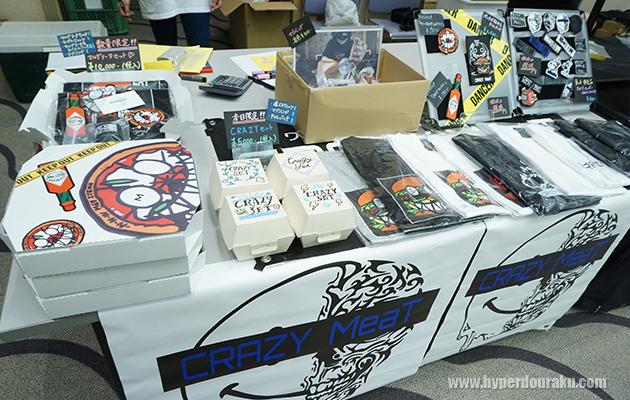 他にも「CRAZY MeaT」の委託販売ブースもあり、ファーストフードを模したさまざまなアパレルグッズが並んでいた。
