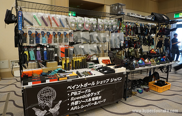「ペイントボールショップ JAPAN」では、ペイントボールやエアソフト用のマスクや装備品、外部ソースに電磁弁などを取り扱われていた。