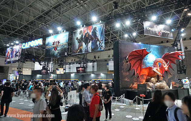 巨大なカプコンブース。巨大ドラゴンのオブジェまでいたぞ。