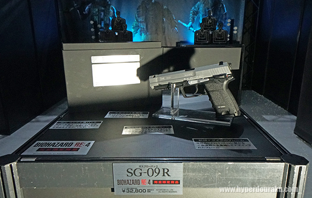 レンジ中央にはバイオハザードコラボモデルのSG-09R ガスブローバックガンが展示。