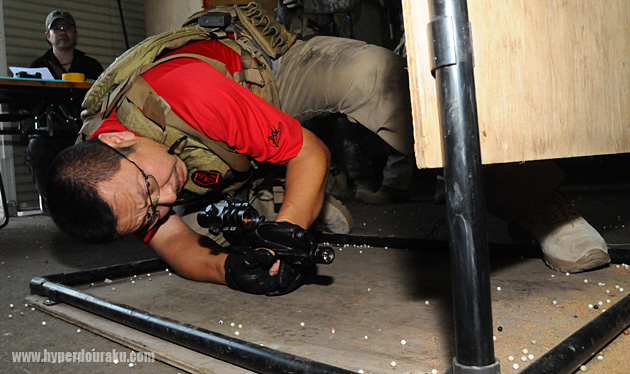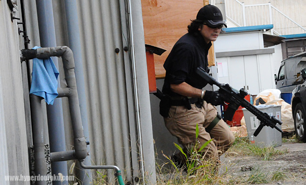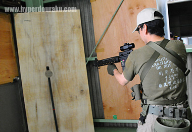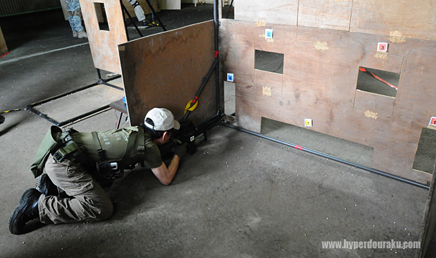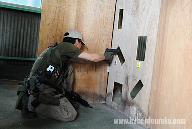 第2ステージはこのセットをライフルとハンドガンでそれぞれ行う。ハンドガンの低い姿勢での射撃も難しい。