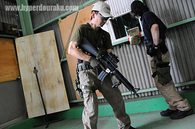 背後で食い入るように見ていたが、速いし上手いし将来有望。プライマリウエポンは発売されたばかりの次世代電動ガン、SCAR-L CQC。