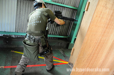 続いて第2ステージは「新イチロー バリケード」。永田市郎氏が考案したトレーニング用のバリケードで様々な射撃方法を学べる。