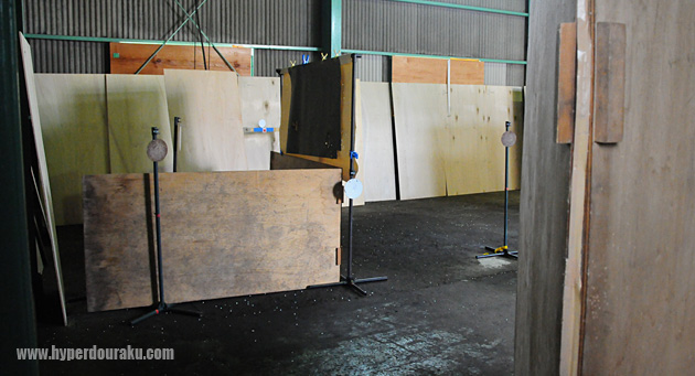 バリケード左から見た3枚のターゲット。個々をクリアしたらその場でマグチェンジ、前方の障害物へ走り込む。