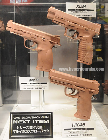 S&W M&Pと、H&K HK45もモックアップを展示。両モデルとも45口径モデルの最新ポリマーフレームオートだ。