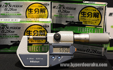真球精度を追求した直径5.95mm±0.01という高精度バイオBB弾。