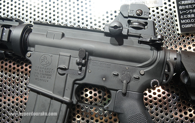 トップレールは肉抜きされた亜鉛ダイキャスト製。可倒式のフロント&リアサイトはM4パトリオットHCに搭載されていたのと同じ樹脂製のもの。