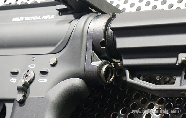 アルミ製のハンドガード。細身で握りやすかった。16インチバレルと民間AR用の長さだが、軽快に取り回しできる。