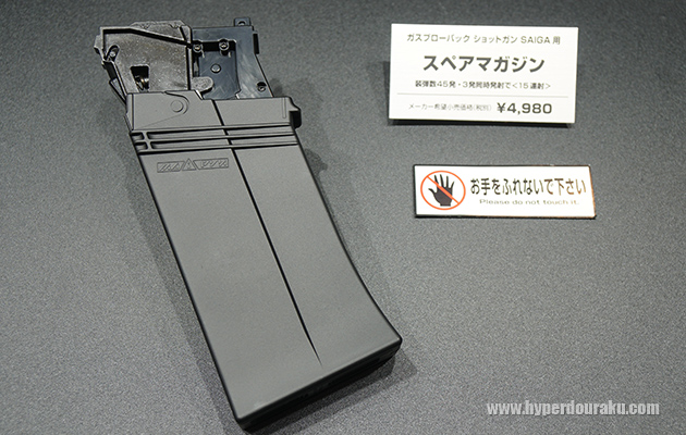 続いてはガスブローバックショットガンのサイガ12K。価格は49,800円(税別)。近日発売予定。