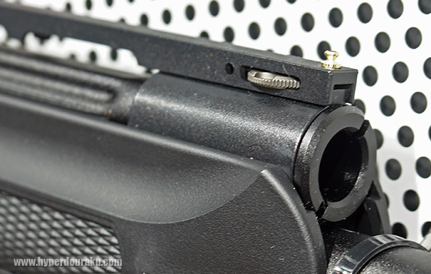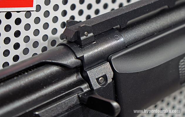 リアサイトはノッチではなく、かなり感覚の広いガード状のもの。