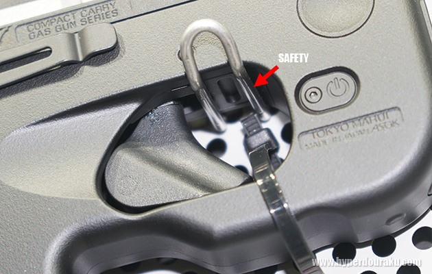 トリガーガード内の上側にマニュアルセフティレバーがある。
