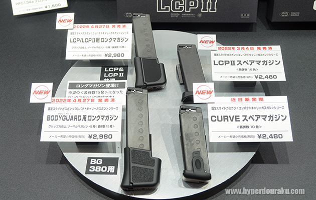 LCPシリーズとボディガードのロングマガジン。装弾数は15発...ノーマルから5発の増加。握りやすいのは良いんだけど、もう少し弾数が欲しかったかな。長いのも検討したそうだけど、カッコ悪すぎだったそうで、この長さに落ち着いたみたい。