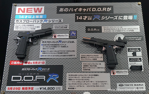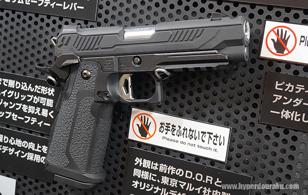ハイキャパ4.3 D.O.R。18歳以上対象のガスブローバック。昨年秋のマルフェスでモックアップが展示されたものが、ほぼ市販品状態で展示された。