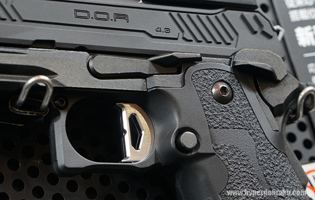 グリップフレームも独自のデザインとなり、トリガーガード下のカットラインなど流行りのハイグリップスタイル。
