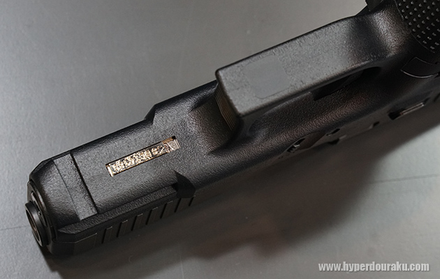 スライドはG17同様にカーボン繊維入り強化樹脂。アンビのスライドストップ。