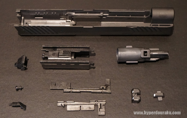 面白いのは取り外し可能な内部ユニットを再現しているところ。FCU(Fire Control Unit)と呼ばれるメカ部分が一体となったユニットがグリップフレームから実銃同様に取り外せるギミックとなっている。