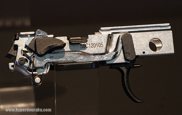 FCU右面にはユニークナンバーがレーザー刻印されている。シリアルではないが、自分だけの番号というわけだ。トリガーバーも亜鉛ダイキャストで、トリガーセーフティもないので、フィーリングは良好だった。
