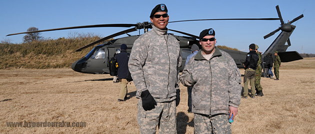米陸軍キャンプ座間からやってきたUH-60ブラックホーク汎用ヘリコプターも展示。クルーとともに記念撮影。
