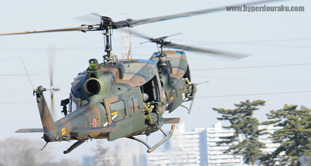 指揮官が上空のCH-47Jチヌーク輸送ヘリコプターからジャンプ!!
