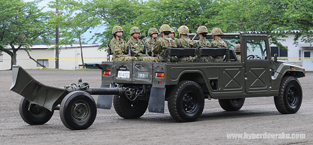 そして120mm迫撃砲 RT。牽引車には女性自衛官の姿もあった。