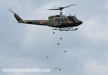 そして空挺隊員が上空から落下傘で降りてきて前段演習が終了する。
