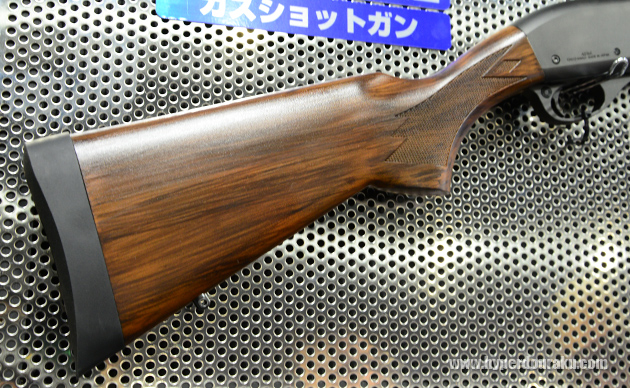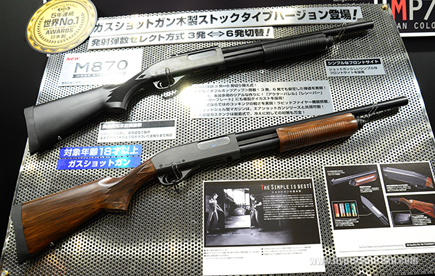 ガスショットガンのM870にウッドストックタイプの新バリエーションが加わる。発売時期、価格未定だが、M870タクティカルと同じくらいの値段になりそうとのこと。つまりは34,800円(税別)と予想する。