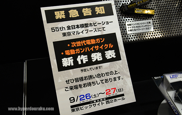 9/26~27に開催される第55回 全日本模型ホビーショーでは次世代電動ガンと電動ガンハイサイクルの新作が発表になるとのこと。