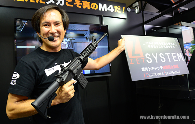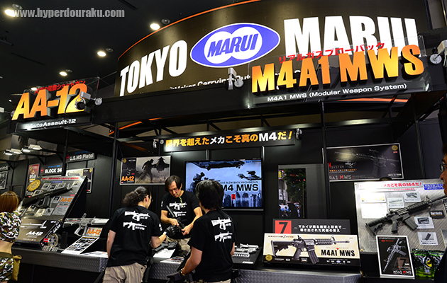 メインの展示となるのは既に発表済みの新商品、M4A1 MWS ガスブローバックガンと、電動フルオートショットガンのAA-12。