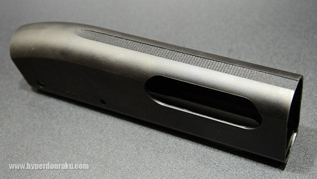 フォアエンドもウッド調のプラ製ではあるが、近くでまじまじと見ないとわからないくらいにリアルだ。