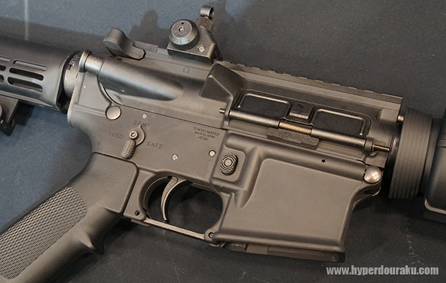 メカボックス貫通型アンビセレクターにより、パチッとしたダイレクトな切替感が良い。米シュミット&ツールズタイプのコルトナンバー刻印とか、こだわってるなぁ。
