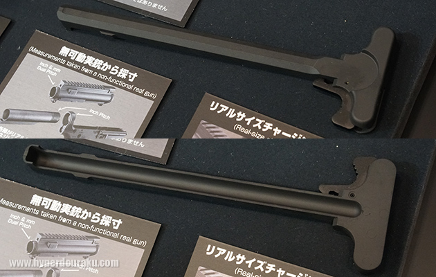 アルミ製のチャージングハンドルはリアルサイズとのことなので、カスタムパーツも取り付けられそう?