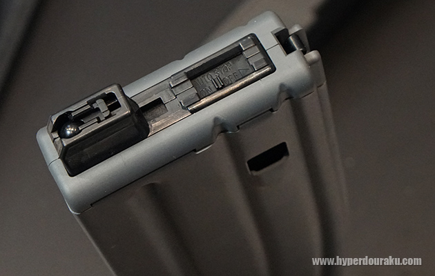 マガジンには「1by1ローディングシステム」と呼ばれる機能が内蔵されている。BB弾をリップ部にあるシャッターで1発ずつチャンバーへ弾を送る方式となる。またマガジンを差しただけではチャンバーへ弾が送られず、撃つときだけ弾が装填され、銃本体に弾が残らない安全機構となっているそうだ。なので、マガジンを途中で抜いても弾ポロしない。