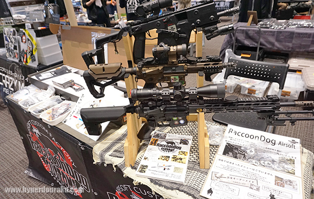 大阪の電動ガン専門のカスタムガンショップである「Raccoondog customs」が今回のめっちゃサバゲ祭に初出展。カスタムガンのデモ機の展示やカスタムプランの相談を受け付け、ほかエアガン内部パーツの販売をしていた。