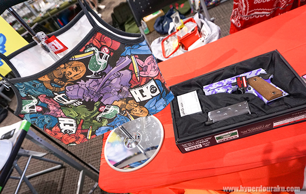 大阪は京橋にあるシューティングバーFIVE発のアパレルブランド「DFH」ではサイバーパンクテイストのアパレルグッズの販売や、外装塗装されたエアガンの販売もあった。