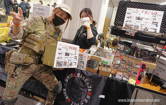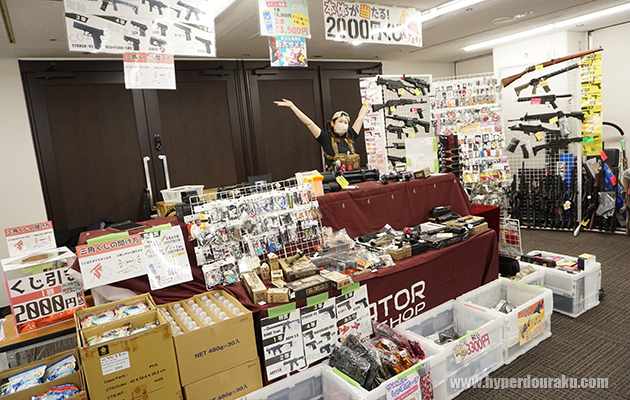 大阪のインドアフィールド「CQB Limited」も出展。中古エアガン本体の販売やガチャガチャ、その他フィールドの宣伝など行っていた。