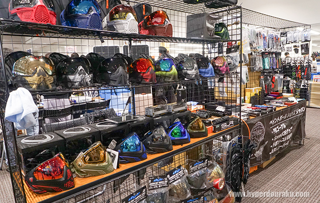 「ペイントボールショップジャパン」ではdyeゴーグルにグローブなどのアイテムが取り扱われていた。