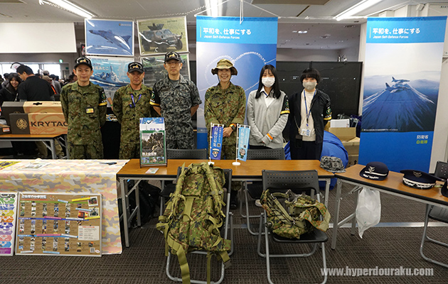 「自衛隊大阪地方協力本部」は自衛隊の隊員募集とその案内の広報でイベントに参加。さらに各制服が用意されて実際に着ることができた。