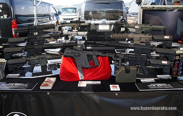 日本国内では2017年2月に発売予定の最新電動ガン、PDW15 ARが展示。アンビ仕様のセレクター、マグキャッチ、チャージングハンドルを備えたアルミレシーバー、CNC加工のアルミレール、モックサプレッサーを標準装備し、バッテリーは伸縮式のストック内に収納。なお、電子トリガーとMOSFETは搭載されない。