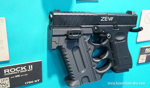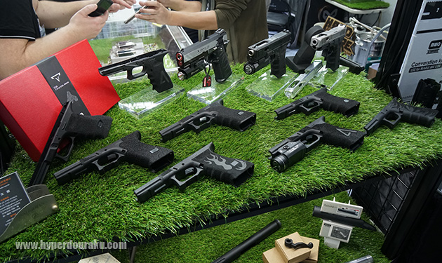オリジナルのピストルカービンやグリップなどを展示していた。