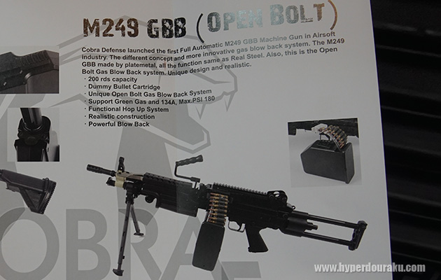 COBRA DEFENSEではM249のオープンボルト式ガスブローバックも予定しているようだ。