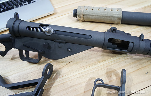 写真のロアレシーバーはダミーだが、ガイズリータイプレール、レミントンタイプレール、HK純正タイプレールなどが製作予定。