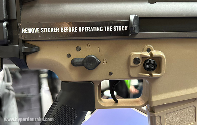 伸縮式のPDWストックにもFNの刻印。
