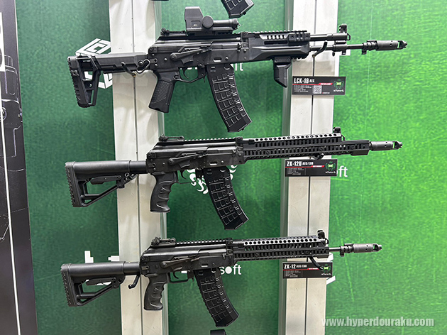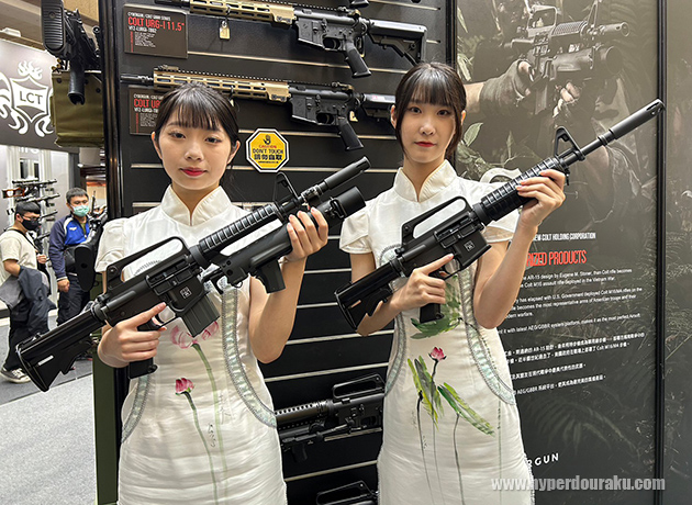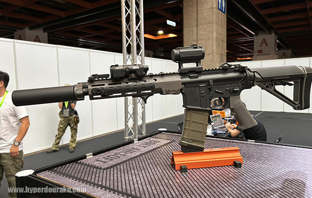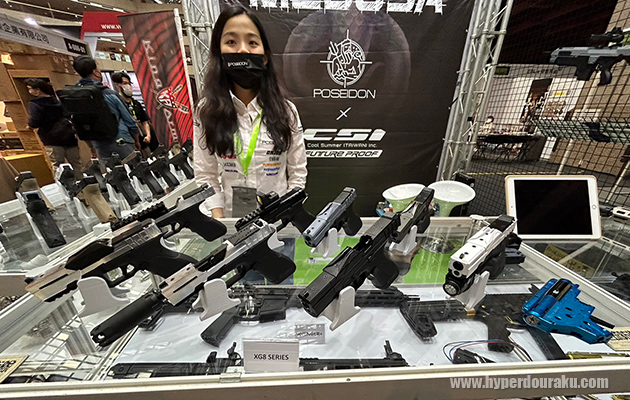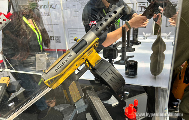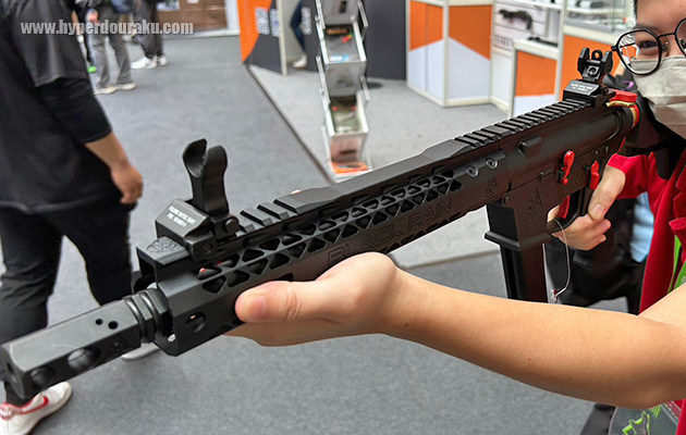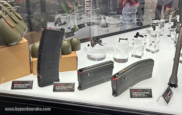 4種のカラーサンプルが展示されていた。装弾数は55発。リキッドチャージ式。