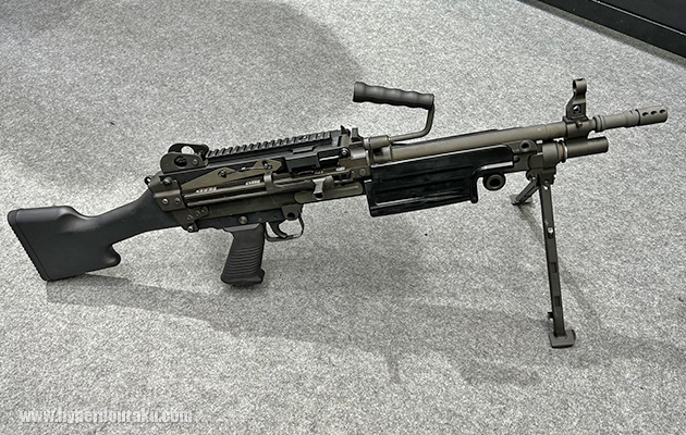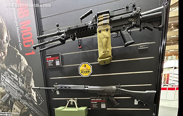 MK48MOD1電動ガン、FALガスブローバック。すでに発売済みのLARとは刻印などがことなる。