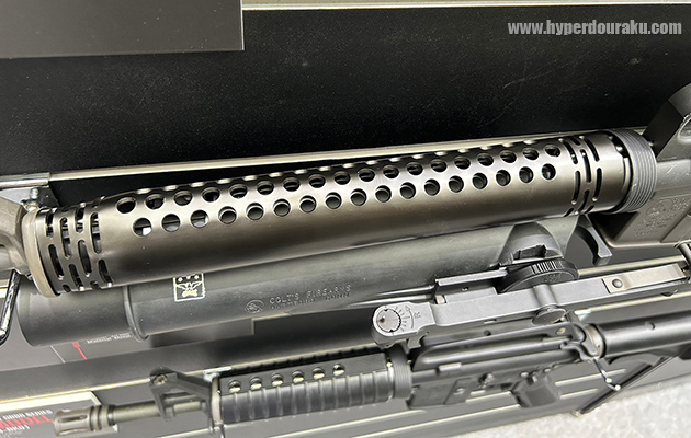 独特な放熱穴付きのメタルハンドガード。