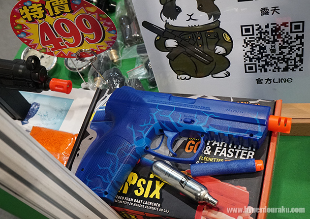 領航全球貿易公司にあったCO2ナーフ。トリガーを引けば単発式で普通のナーフよりちょっと飛ぶかな程度。近くで撃たれても全然痛くなかった。